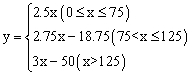 当75<x≤125,175﹣x≤75时,2.75x﹣18.75+2.5(175﹣x)=455,