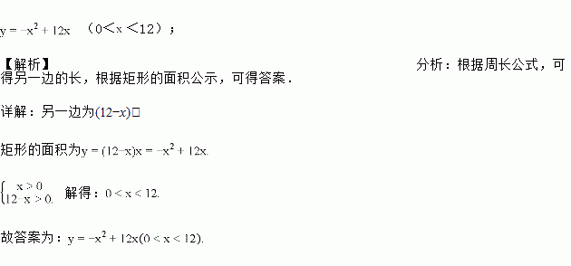 矩形的周长为24,设它的一边长为,它的面积与之间的函数关系式为__________.