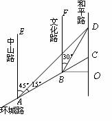 如图,AC是某市环城路的一段,AE,BF,CD都是南北方向的街道,其与环城路AC的交叉路口分别是A,B,C.经测量花卉世界D位于点A的北偏东45°方向、点B的北偏东30°方向上,AB=2km,∠DAC=15°.