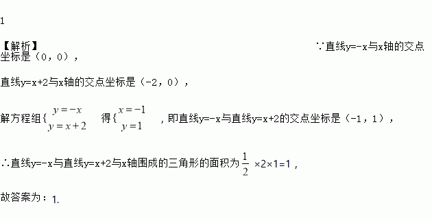 直线y=-x与直线y=x+2 与x 轴围成的三角形面积是________.