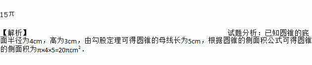 如图,圆锥的底面半径为3cm,高为4cm,那么这个圆锥的侧面积是_____cm2.
