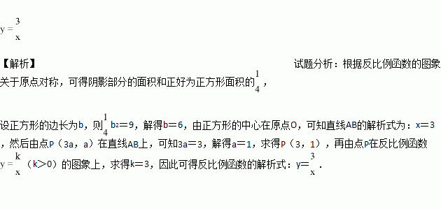 如图,在直角坐标系中,正方形的中心在原点O,且正方形的一组对边与x轴平行,点P(3a,a)是反比例函数