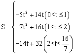 综上所述,点Q与点M相遇前S与t的函数关系式为
