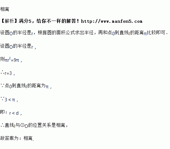 已知⊙O的面积为9πcm2,若点O到直线L的距离为πcm,则直线l与⊙O的位置关系是_____.