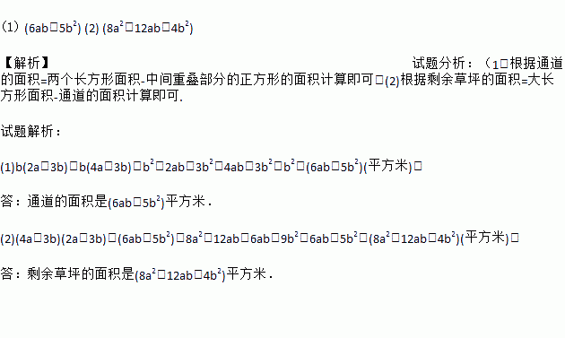 如图,在某住房小区的建设中,为了提高业主的宜居环境,小区准备在一个长为(4a+3b)米,宽为(2a+3b)米的长方形草坪上修建两条宽为b米的通道.