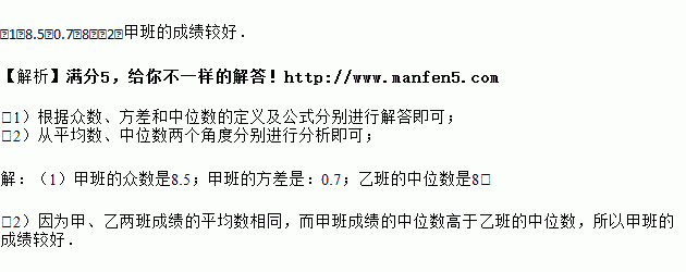 (2)根据上表中的平均数和中位数你认为哪班的成绩较好?并说明你的理由
