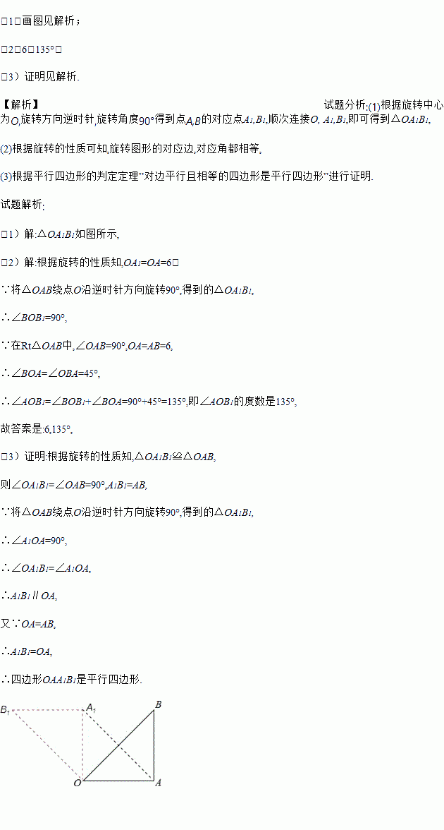 (1)请你画出将△OAB绕点O沿逆时针方向旋转90°,得到的△OA1B1;