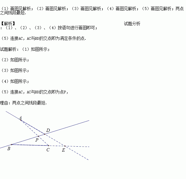(1)画射线DA;(2)画直线BD;(3)连结BC;