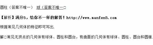 请你分别写出一个符合条件的几何体:无顶点的几何体__________,有曲面的几何体_________.