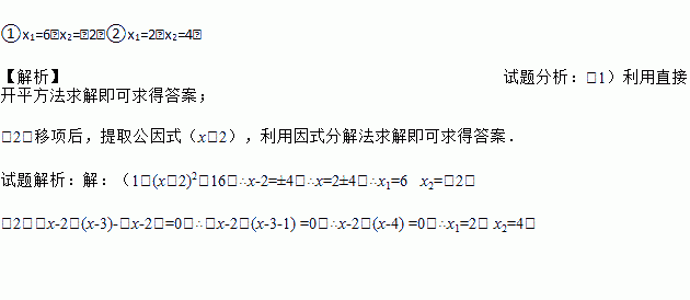 ①(x﹣2)2﹣16=0.