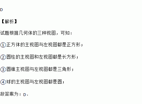 下列四个几何体中,主视图与左视图相同的几何体有( )