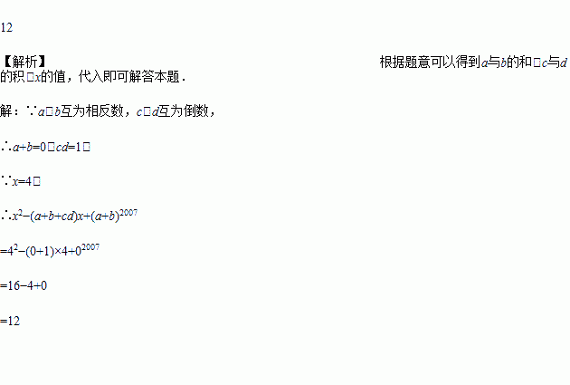 求代数式的值:若a、b互为相反数,c、d互为倒数,等于4.求代数式的值.