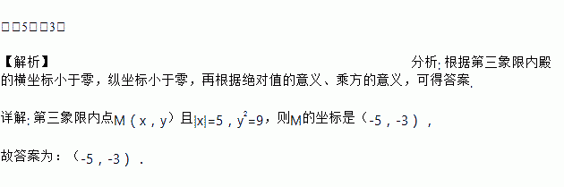 第三象限的点M(x,y)且|x|=5,y2=9,则M的坐标是______.