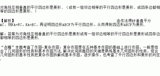 请回答:在小凯的作法中,判定四边形AECF是菱形的依据是______________________.
