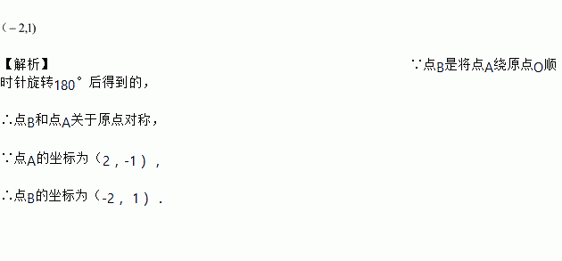 在平面直角坐标系中,将点(2,-1)绕原点旋转后,得到的对应点的坐标为___________.