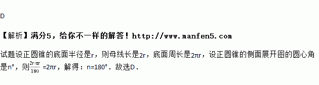 若圆锥的轴截面为等边三角形,则称此圆锥为正圆锥,则正圆锥侧面展开图的圆心角是( )
