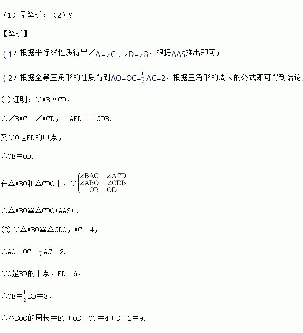 (2)若BC=AC=4,BD=6,求△BOC的周长.