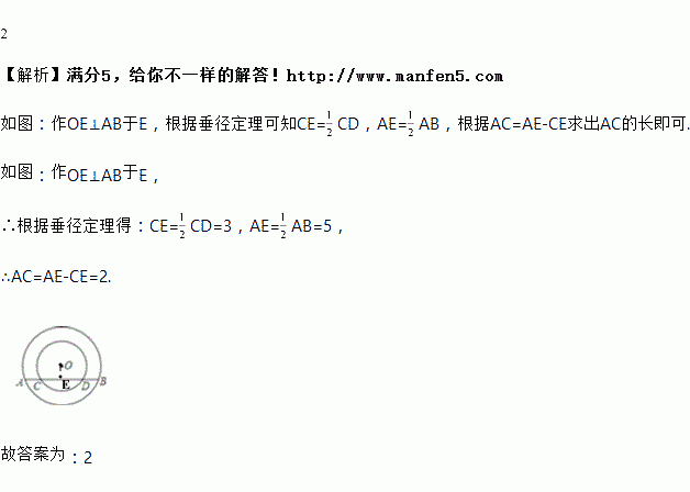 如下图,在以为圆心的两个同心圆中,大圆的弦交小圆于和两点,,,则长为________.