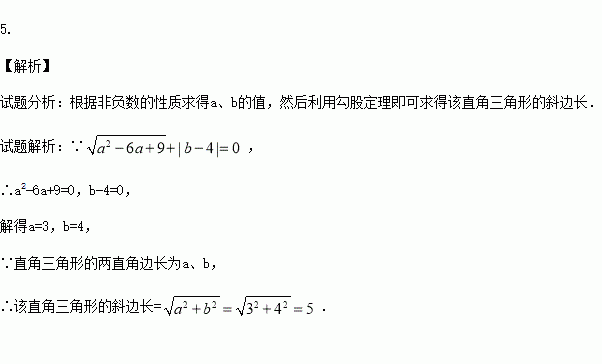 若直角三角形的两直角边长为a、b,且满足,求该直角三角形的斜边长。