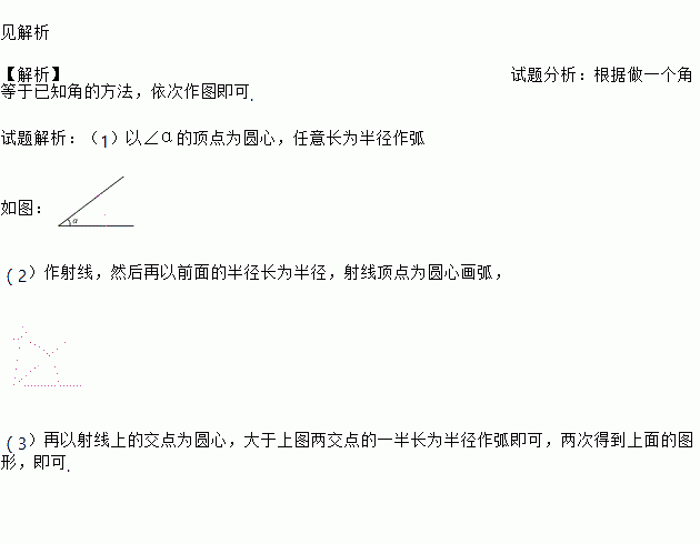 如图,已知∠α,用尺规作∠β,使∠β=2∠α;