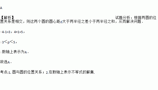 已知⊙O1和⊙O2的半径分别为1和4,如果两圆的位置关系为相交,那么圆心距O1O2的取值范围在数轴上表示正确的是( )