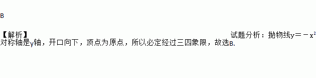 B 【解析】试题分析:抛物线y=-x2对称轴是y轴,开口向下,顶点为原点,所以必定经过三四象限,故选B.