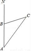 如图,上午9时,一条船从A处出发,以20海里/时的速度向正北航行,12时到达B处,测得∠NAC=36°,∠ABC=108°,求从B处到灯塔C的距离.