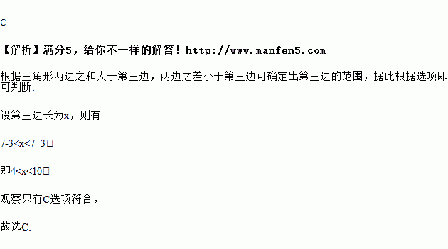 已知三角形两边的长分别是3和7,则此三角形第三边的长可能是( )