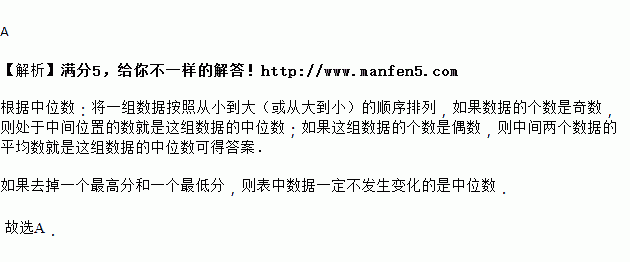 某校九年级举办传统文化进校园朗诵大赛,小明同学根据比赛中九位评委所给的某位参赛选手的分数,制作了一个表格,如果去掉一个最高分和一个最低分,则表中数据一定不发生变化的是( )