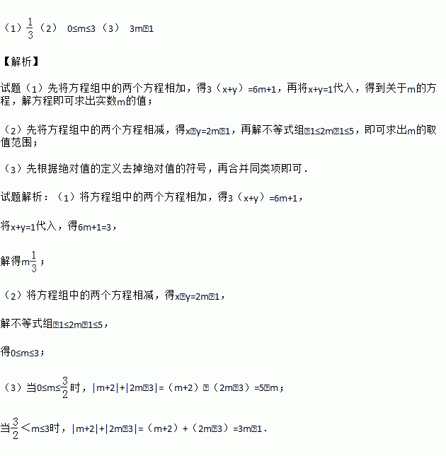 已知关于x、y的方程组(实数m是常数).