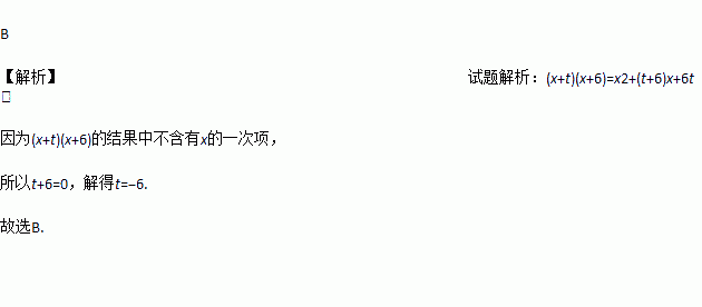 若(x+t)(x+6)的结果中不含有x的一次项,则t的值是( )