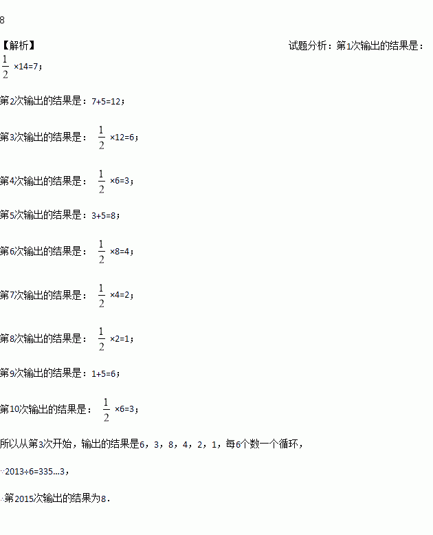 有一数值转换器,原理如图所示,若开始输入x的值是14,可发现第1次输出的结果是7,第2次输出的结果是12,依次继续下去,则第2015次输出的结果是_________.