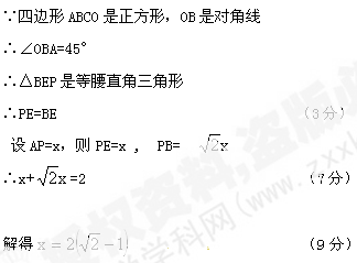 把正方形沿OP对折,使点A落在对角线OB上的E处,折痕交AB于P,试求△EPO的面积。![]()