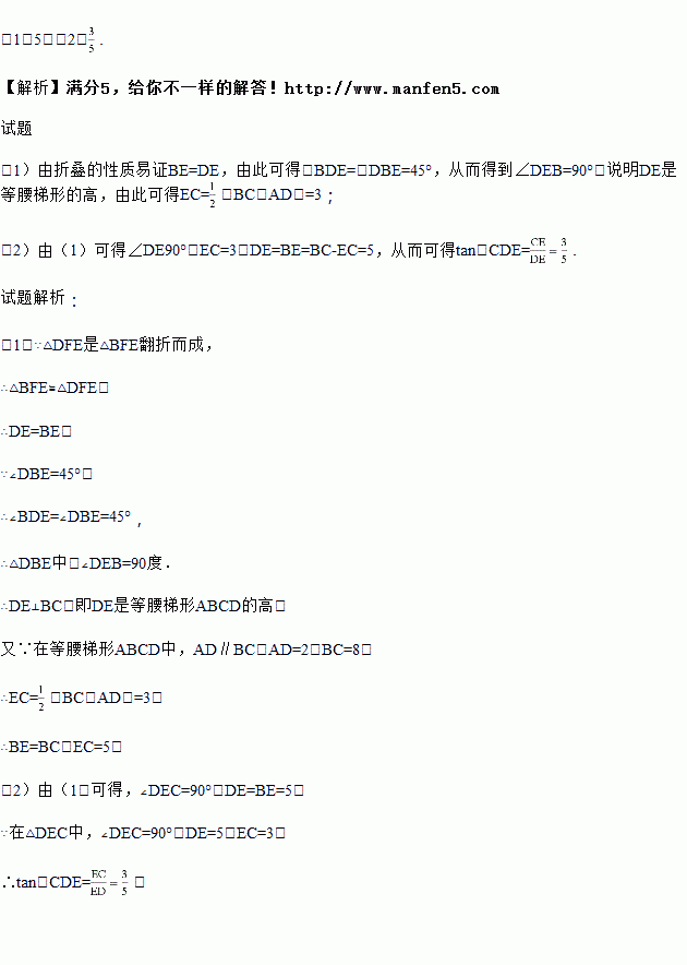 如图,等腰梯形ABCD中,AD∥BC,∠DBC=45°,翻折梯形ABCD,使点B与点D重合,折痕分别交边AB、BC于点F、E,若AD=2,BC=8.
