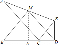如图,△ABC和△CDE均为等腰直角三角形,点B,C,D在一条直线上,点M是AE的中点,BC=3,CD=1.