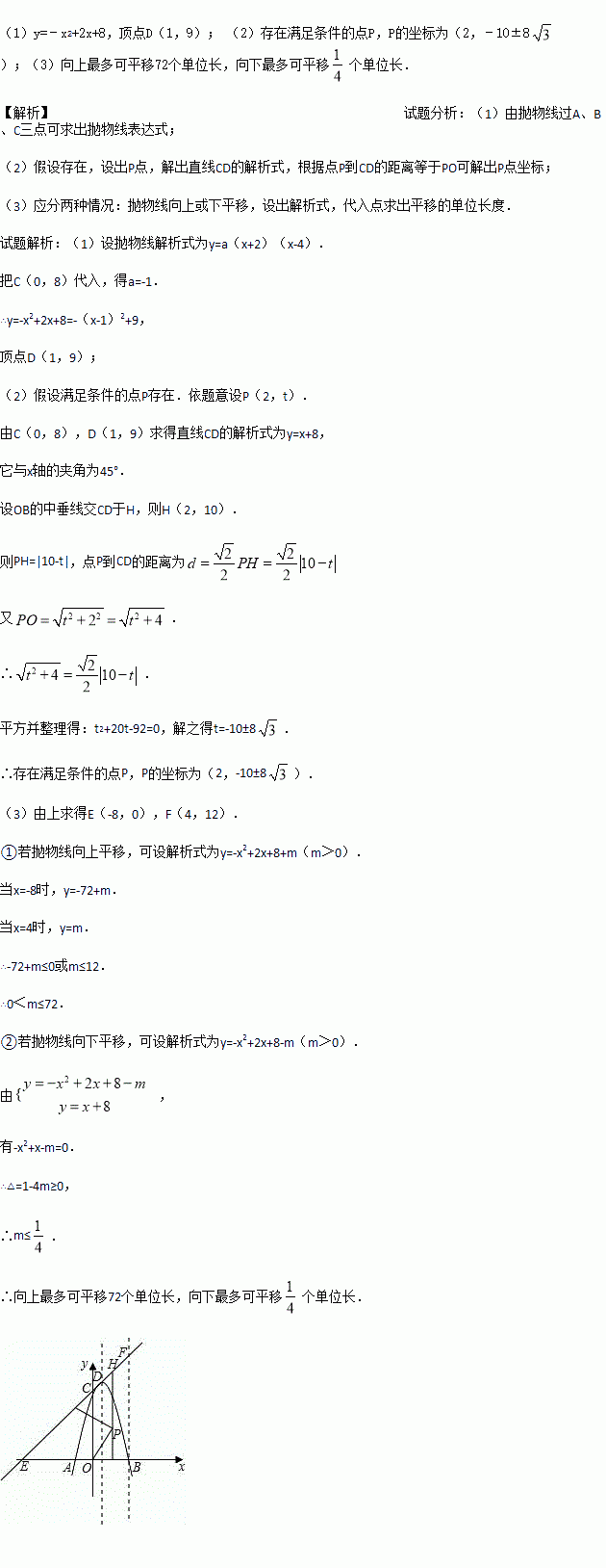 (3)过点B作x轴的垂线,交直线CD于点F,将抛物线沿其对称轴平移,使抛物线与线段EF总有公共点.试探究:抛物线向上最多可平移多少个单位长度?向下最多可平移多少个单位长度?