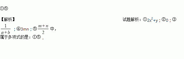 下列各式①2x2+y;②0;③;④3mn;⑤中,属于多项式的是 _____________.