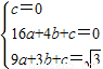 ¡¾´ð°¸¡¿·ÖÎö£º£¨1£©½«ÈýµãµÄ×ø±ê´úÈ룬ÀûÓôý¶¨ÏµÊý·¨Çó½â¼´¿ÉµÃ³ö´ð°¸£®