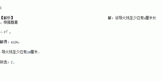导火线的燃烧速度为0.8cm/s,爆破员点燃后跑开的速度为5m/s,为了点火后能够跑到150m外的安全地带,导火线的长度至少是( )