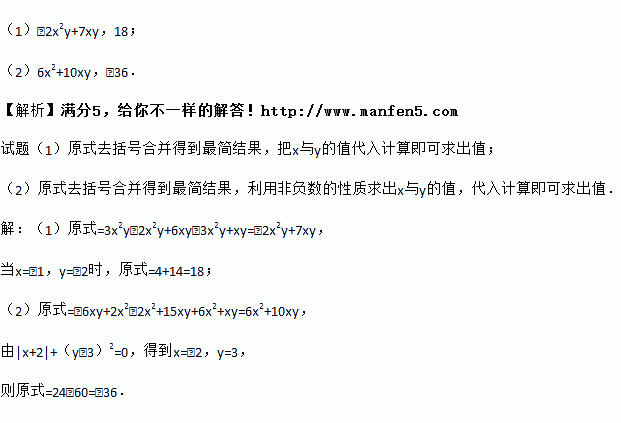 (1)先化简,再求值:3x2y﹣[2x2y﹣3(2xy﹣x2y)﹣xy],其中x=﹣1,y=﹣2