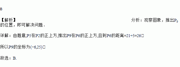 ,…得到斐波那契螺旋线,然后顺次连结P1P2,P2P3,P3P4,…得到螺旋折线(如图),已知点P1(0,1),P2(﹣1,0),P3(0,﹣1),则该折线上的点P9的坐标为( )