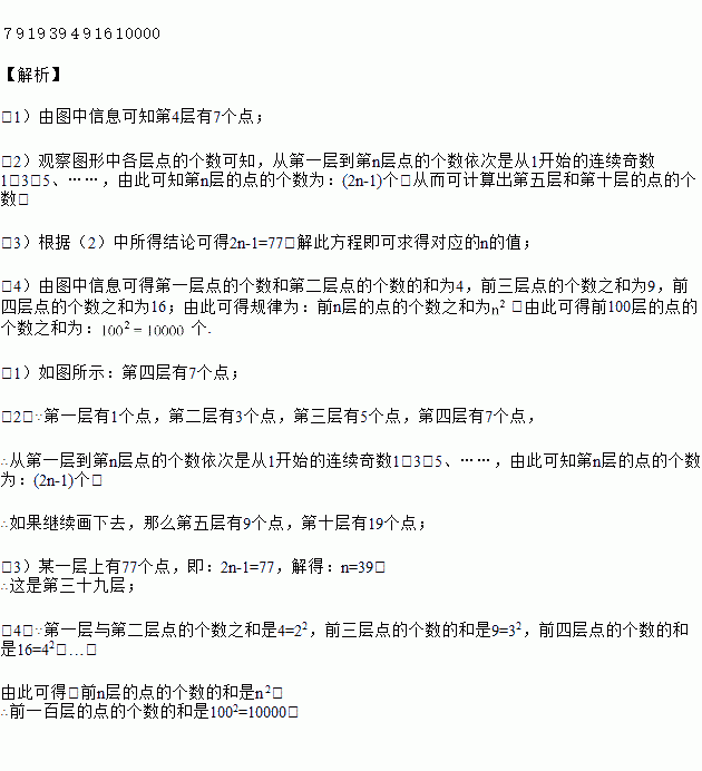 (3) 某一层上有77个点,你可知道这是第_________层;
