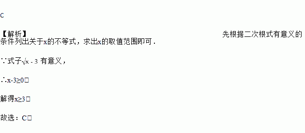 A. x≤3 B. x<3 C. x≥3 D. x>3