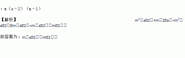 :m(a﹣2)(m﹣1) 【解析】m2(a﹣2)+m(2﹣a)=m2(a﹣2)﹣m(a﹣2)=m(a﹣2)(m﹣1). 故答案为:m(a﹣2)(m﹣1).