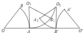 分析:圆心O由O到O1的路径是以A为圆心,以OA为半径的圆弧;由O1到O2圆心所经过的路线是线段O1O2;由O2到O′,圆心经过的路径是:以B′为圆心,以O′B′为半径的圆弧,据此即可判断。