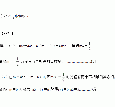(1)当取何值时,方程有两个不相等的实数根.![]()