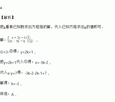 如果关于x,y的二元一次方程组的解x,y满足x-y=7,那么k的值是( )