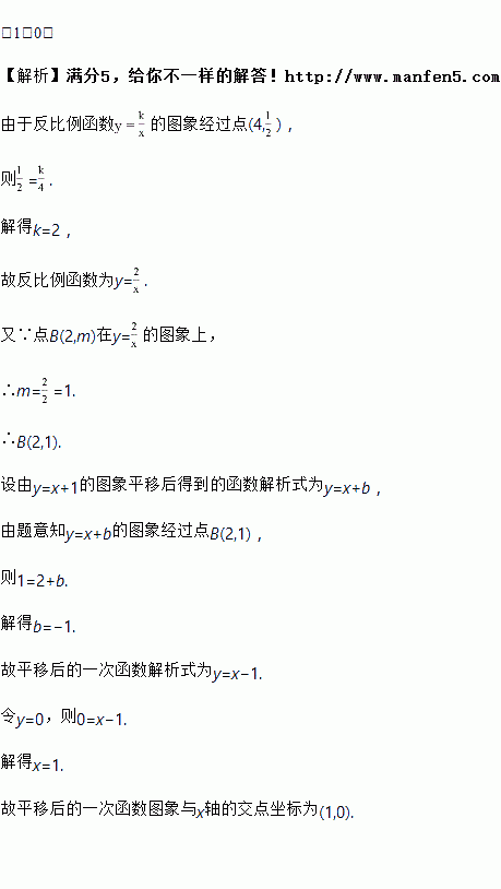 已知反比例函数 的图象经过点 ,若一次函数y=x+1的图象平移后经过该反比例函数图象上的点B(2,m),求平移后的一次函数图象与x轴的交点坐标.