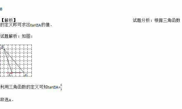 如图,△ABC的三个顶点在正方形网格的格点上,则tan∠A的值是( )