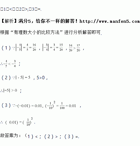 (1) ________ ; (2) _______0; (3)-(-0.01)_______